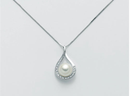 Collana Donna Miluna PCL5499X - Collana in oro bianco con perla bianca coltivata di acqua dolce 8-8,5 mm e brillante 0,03 ct