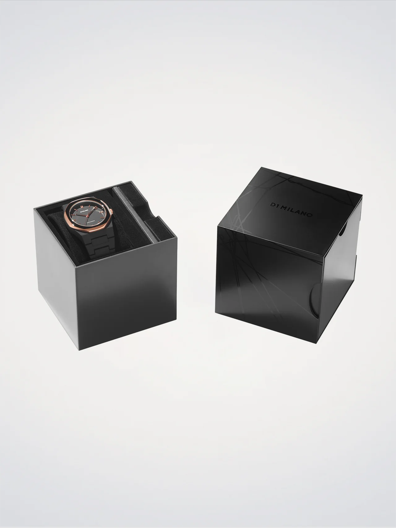 Polycarbon Enamel ultra moderno e contemporaneo è realizzato con una resistente cassa in policarbonato nero, con finitura soft touch, che offre un look moderno ed essenziale, che si fonde perfettamente con lo stile e la praticità quotidiana. Il leggero policarbonato garantisce un comfort perfetto al polso, sia maschile che femminile, rendendolo perfetto per l'uso quotidiano, mantenendo un'estetica robusta.