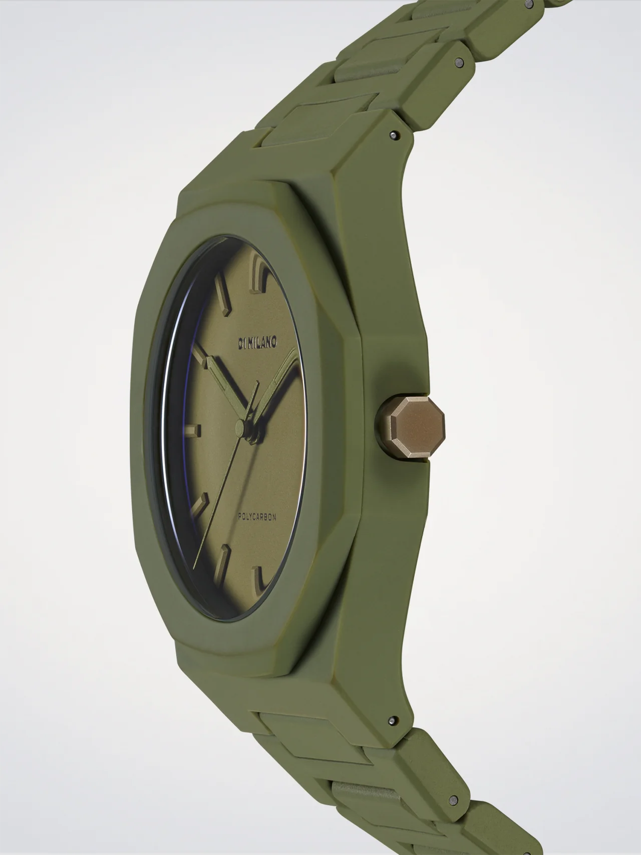 La prima caratteristica di un prodotto iconico è il suo potere espressivo, la sua capacità di distinguersi dalla massa e di essere immediatamente riconoscibile. Ed è con questa visione chiara in mente che è stato creato Polycarbon. Un materiale inaspettato, il policarbonato, reso piacevole e morbido al tatto da una finitura soft-touch che lo rende comodo da indossare. L'estremo monocromatismo lo rende immediatamente riconoscibile, essendo un orologio che rompe le regole dell'orologeria.