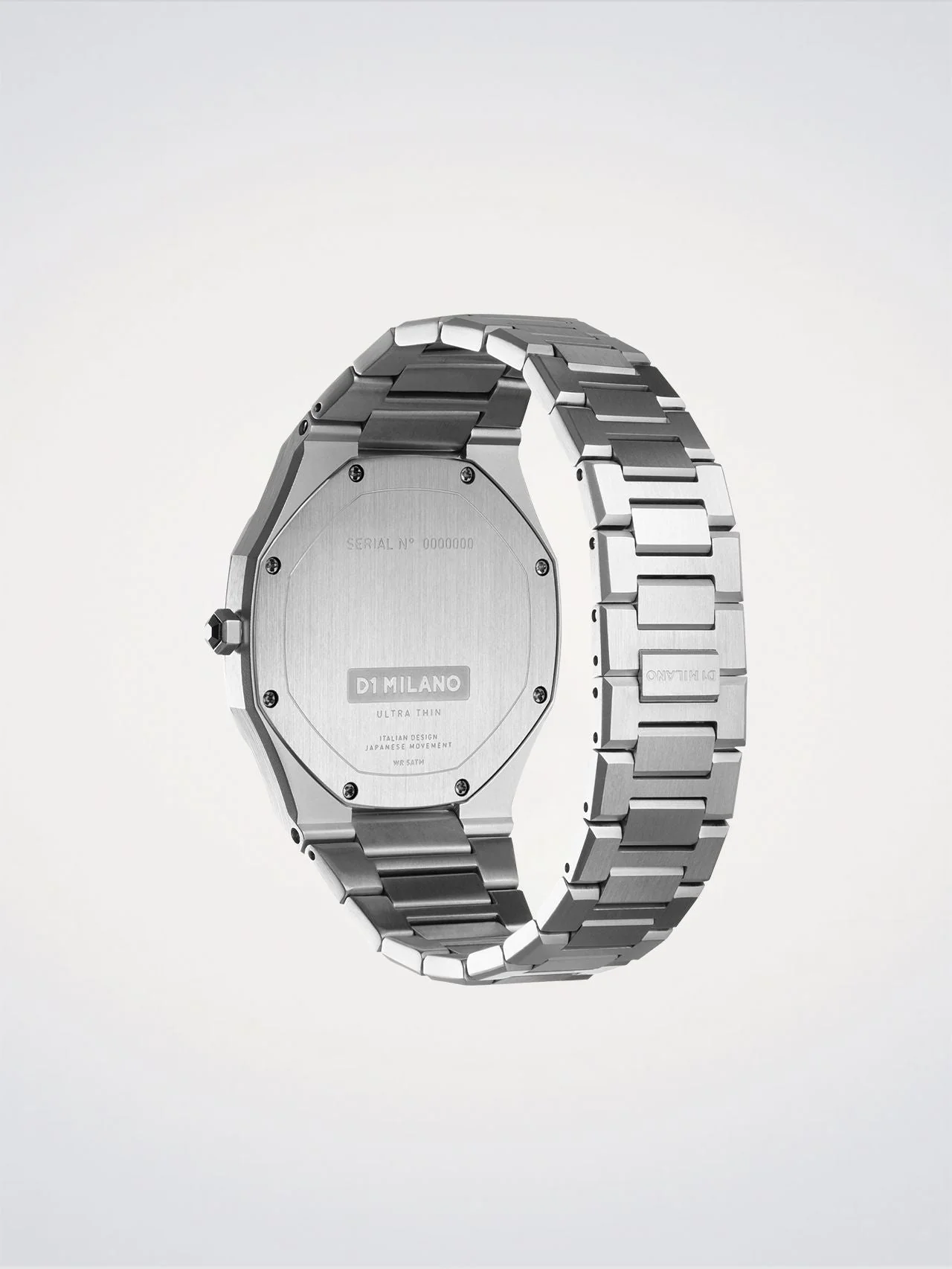 Celebre per la sua sottilissima cassa in acciaio inox 316L CNC da soli 6 mm, progettata per offrire una vestibilità perfetta.