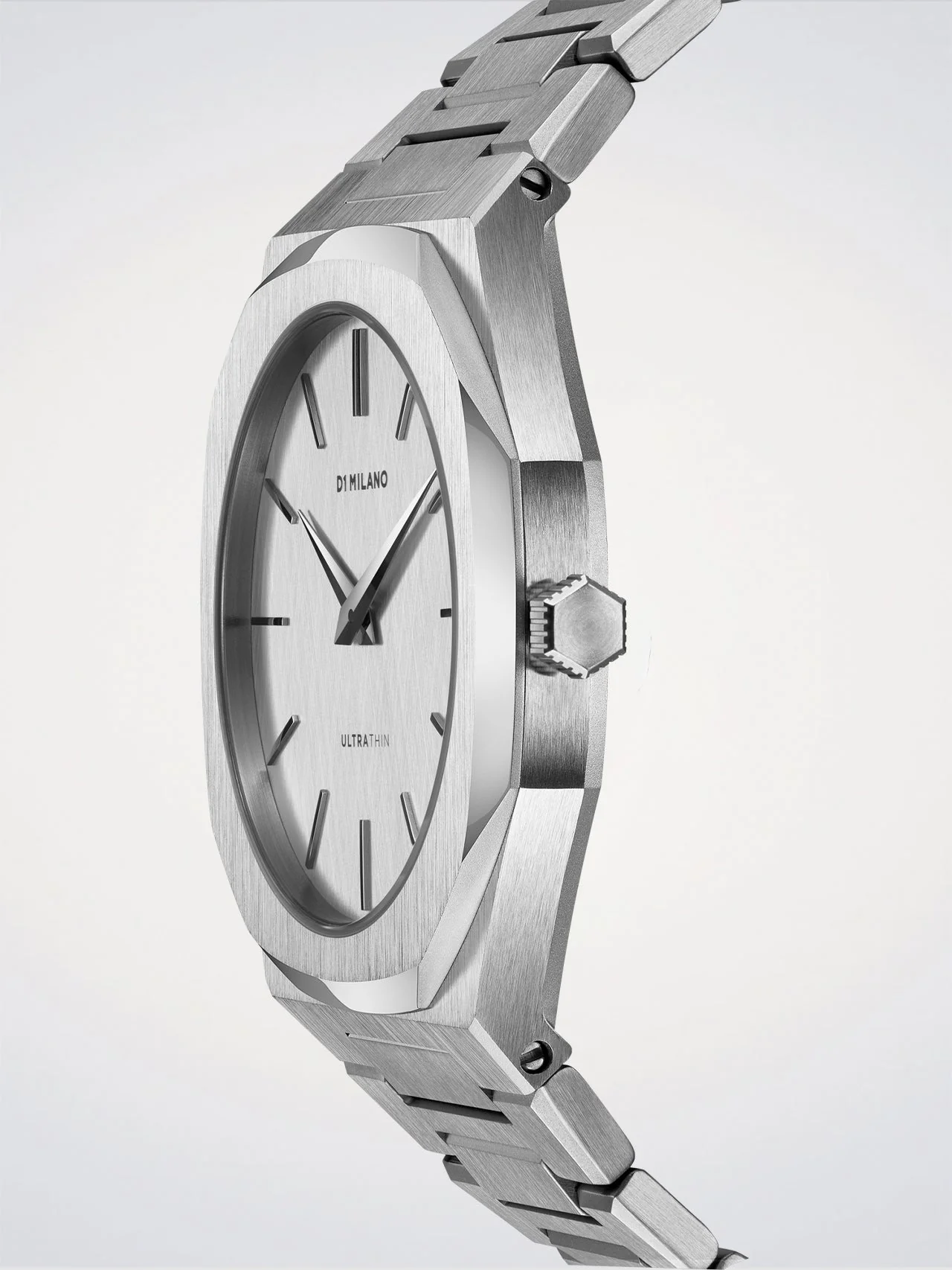 L'edizione Ultra Thin Linen presenta il primo quadrante bianco tra i modelli da 40 mm, mantenendo la forma e le caratteristiche, tra cui l'iconica cassa in acciaio inossidabile 316L da 6 mm di spessore.