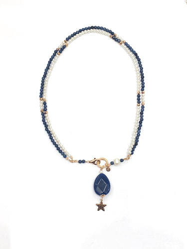 Girocollo Sacramore perline e pietrine blu
